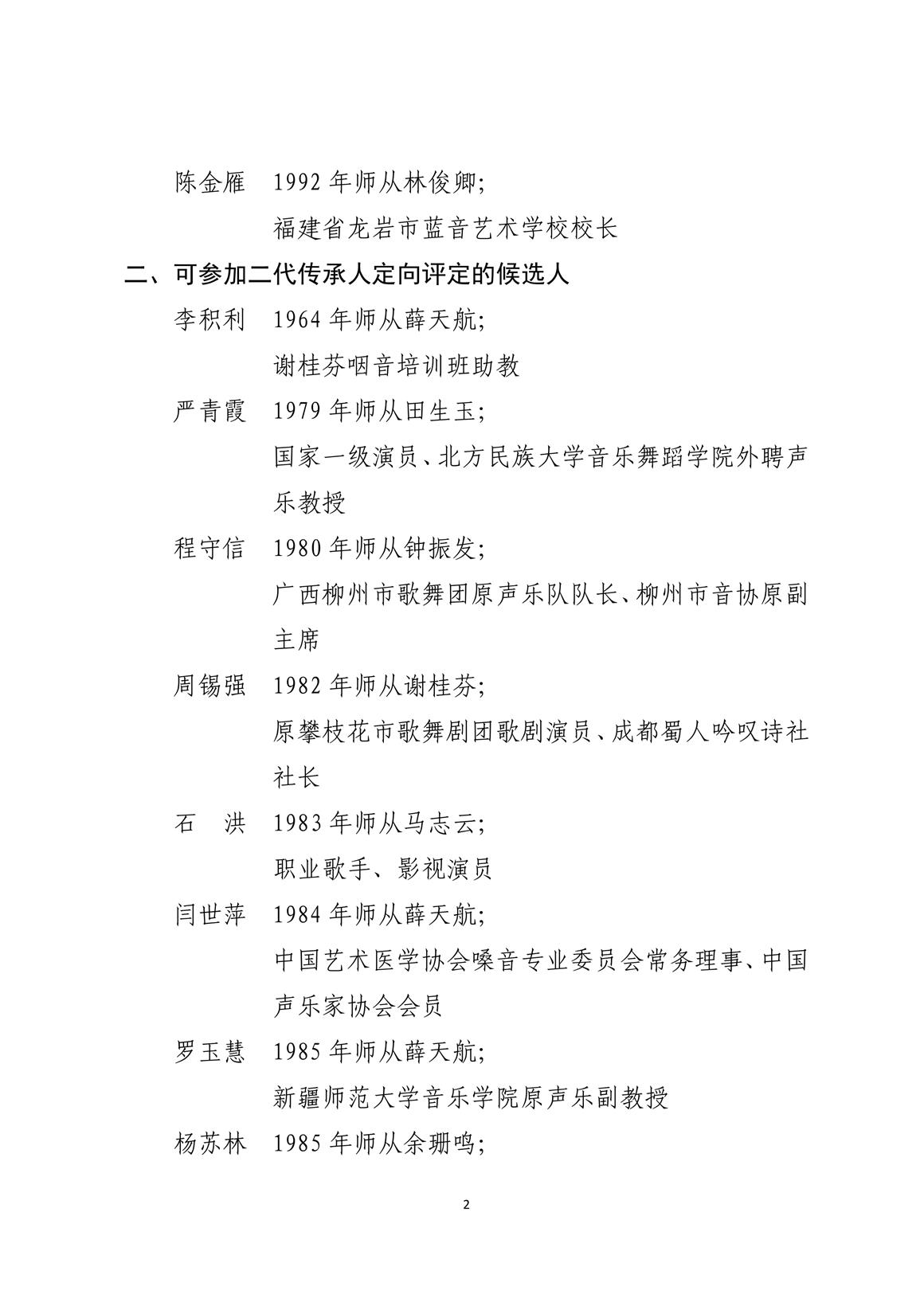 咽音练声法传承人定向评定候选人名单(一)