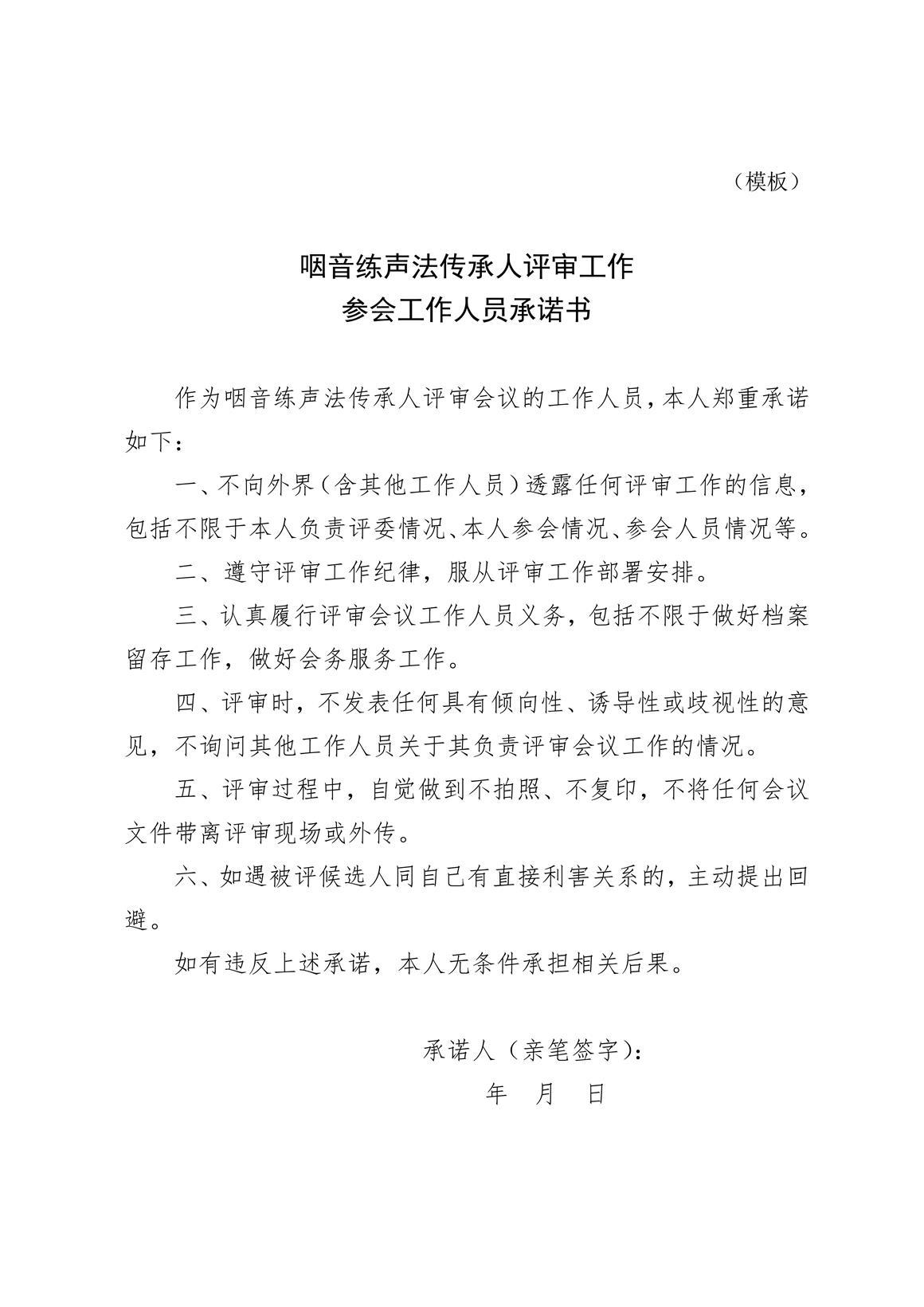咽音练声法传承人评审工作参会工作人员须知及承诺书公示