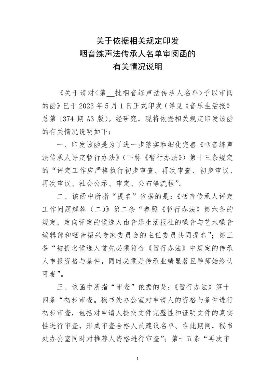 关于依据相关规定印发咽音练声法传承人名单审阅函的有关情况说明